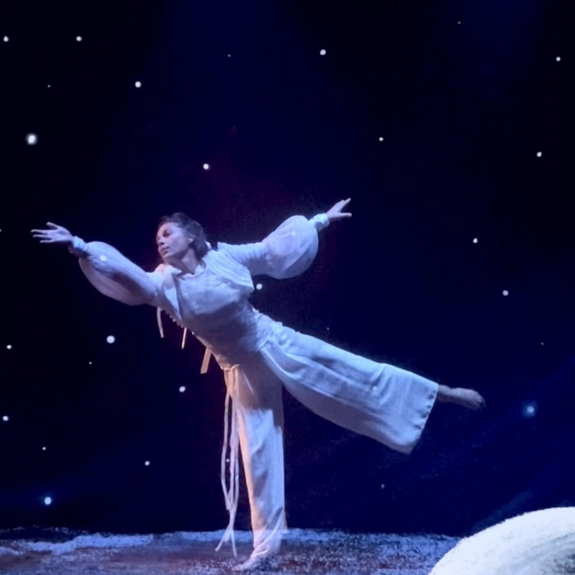 Elle débute avec le spectacle "Un nuage sur la terre" de l'Atelier du Vent, où elle interprète "Le nuage" près de 400 représentations en 8 ans.
